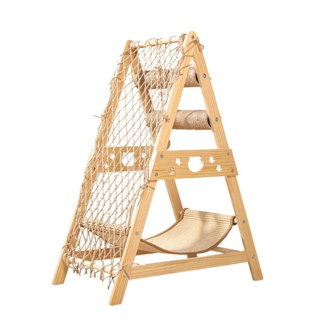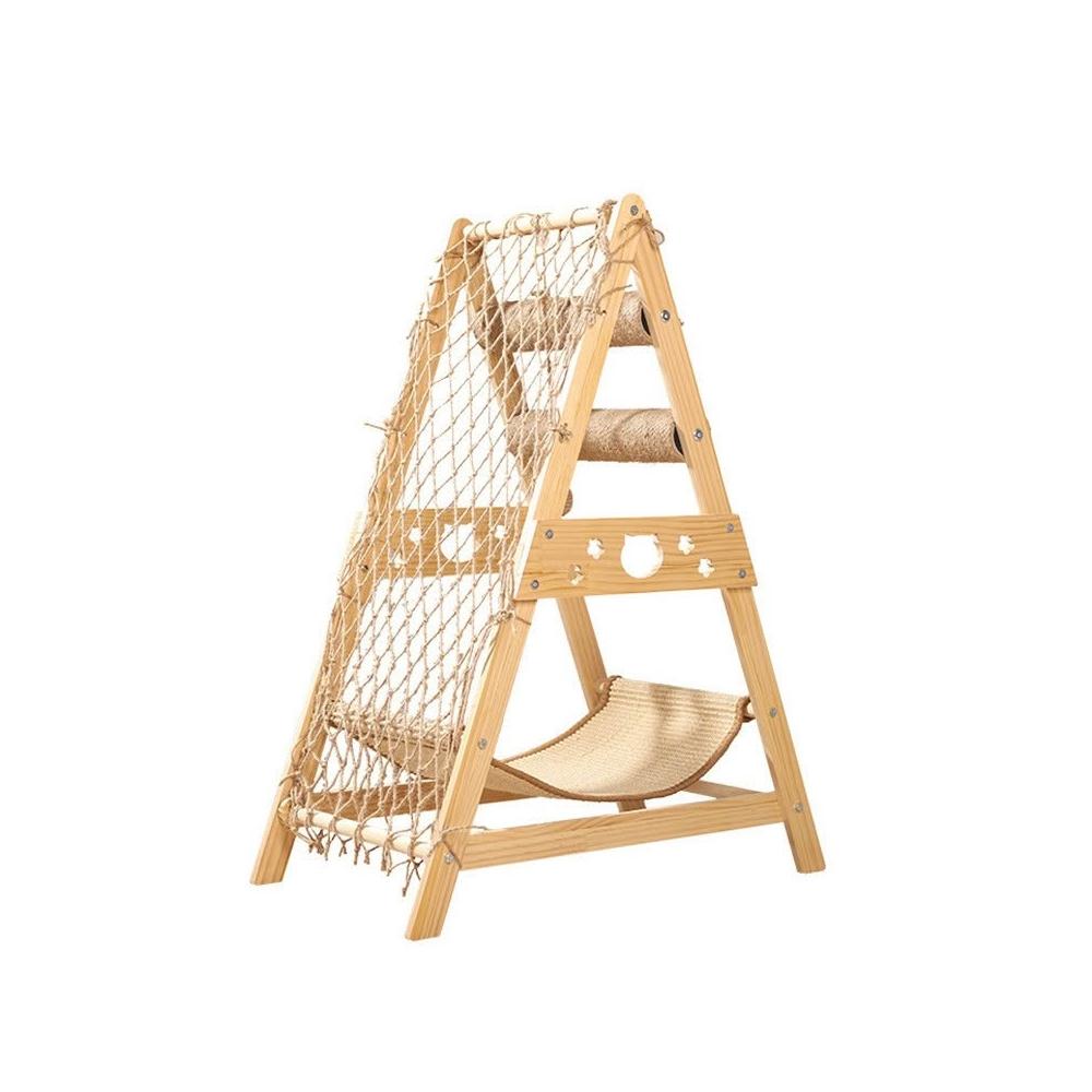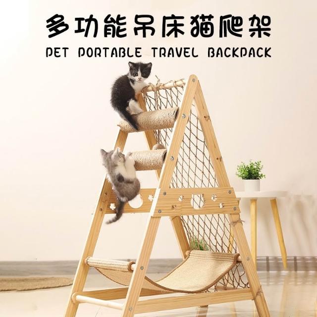 免運新款貓爬架實木貓抓板窩一體實木耐磨不掉屑吊床寵物用品廠家