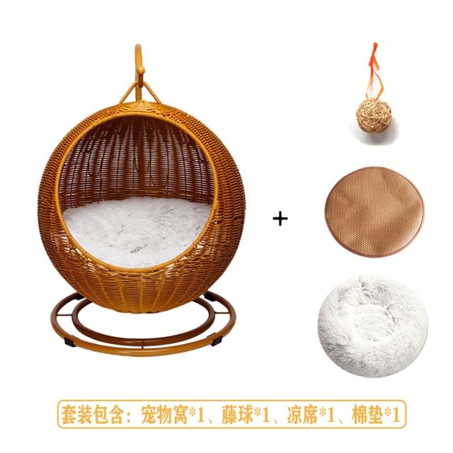 免運貓窩藤編寵物用品夏季寵物窩涼爽狗窩懸空貓吊籃四季通用貓墊