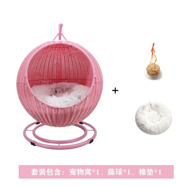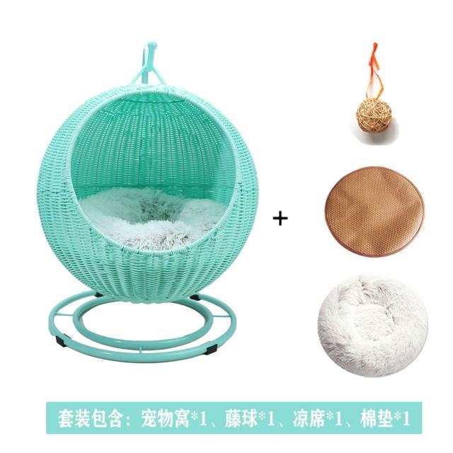 免運貓窩藤編寵物用品夏季寵物窩涼爽狗窩懸空貓吊籃四季通用貓墊