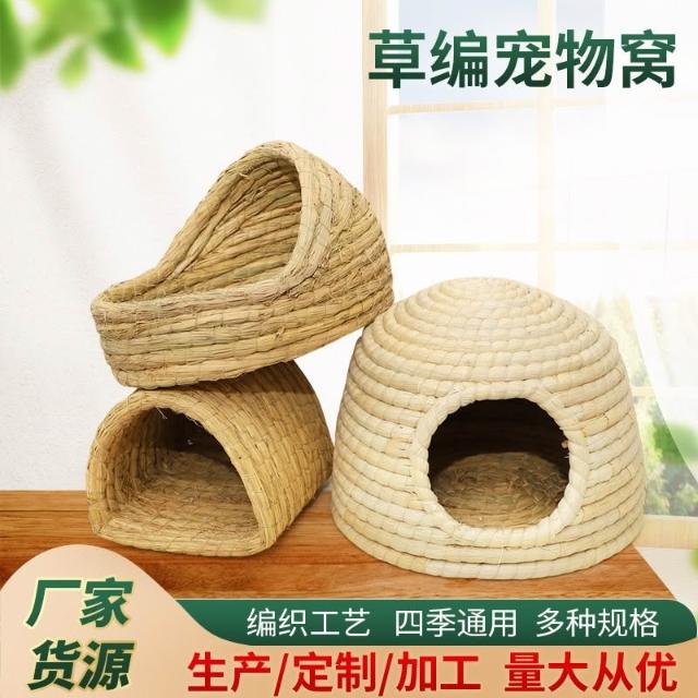 免運廠家草編兔子窩龍貓松鼠刺猬窩 倉鼠金絲熊繁殖窩手工編織寵物