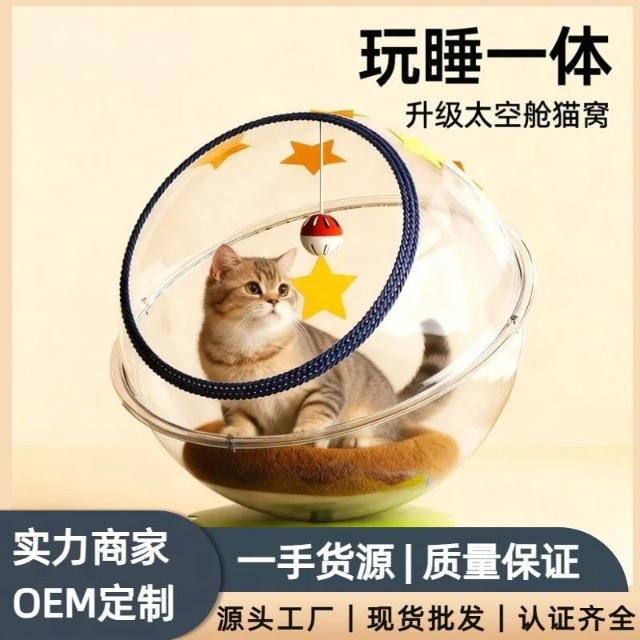 免運太空艙貓窩四季通用高透亞克力轉盤半封閉貓玩具冬天保暖貓床