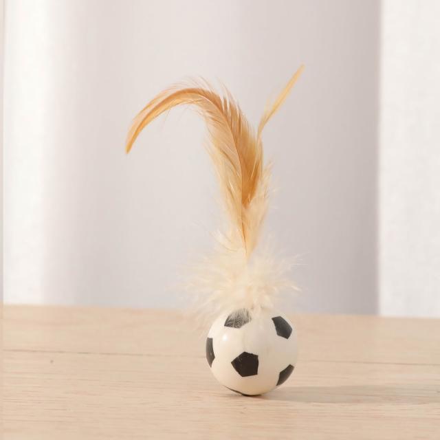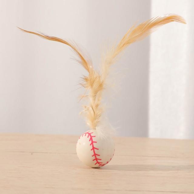 免運羽毛橡膠彈力球創意貓玩具幼貓互動解悶拋擲運動球逗貓棒球形