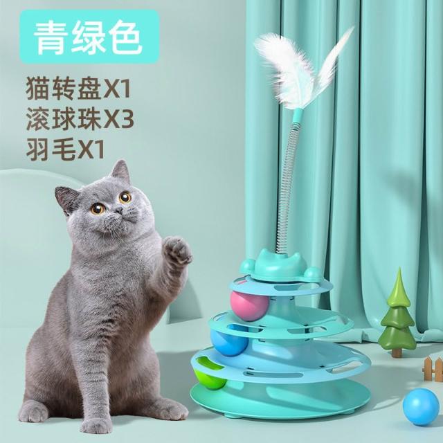 免運貓轉盤玩具自嗨解悶逗貓棒轉盤球逗貓神器羽毛小幼貓寵物益智