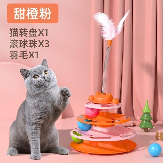 免運貓轉盤玩具自嗨解悶逗貓棒轉盤球逗貓神器羽毛小幼貓寵物益智