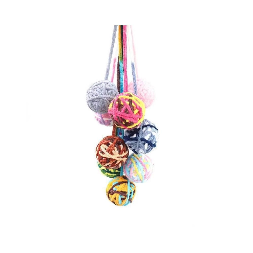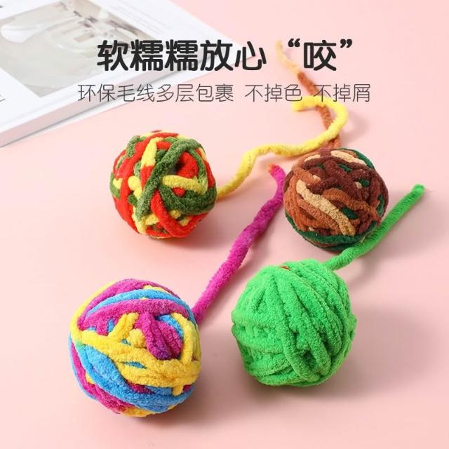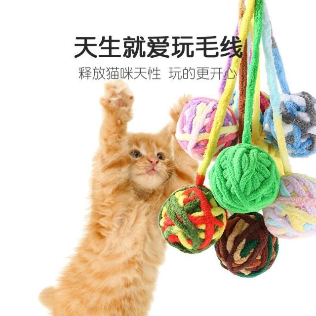 免運跨境逗貓棒貓咪自嗨解悶啃咬逗貓玩具球鈴鐺彩色毛線球寵物玩