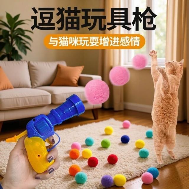 免運貓玩具球毛絨球發射槍自嗨解悶逗貓棒寵物貓玩具