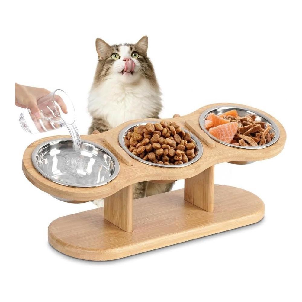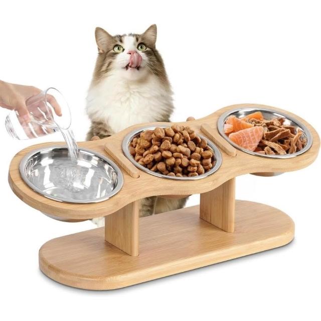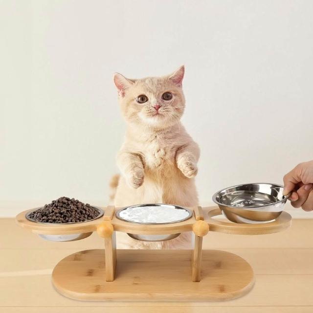 免運竹制寵物碗架小型犬食盆架家用寵物貓咪狗狗水碗架傾斜護頸喂