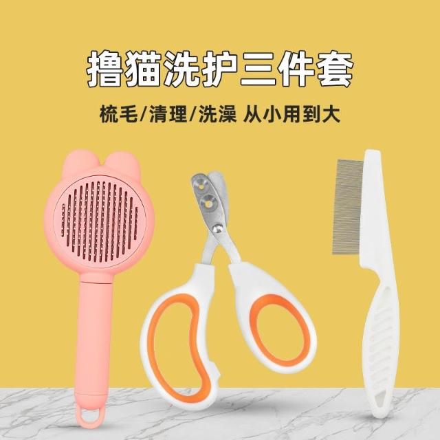 免運寵物梳子貓咪狗狗祛浮毛跳蚤鋼針梳圓孔貓咪專用指甲剪清潔三