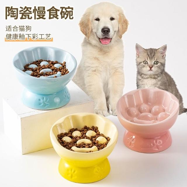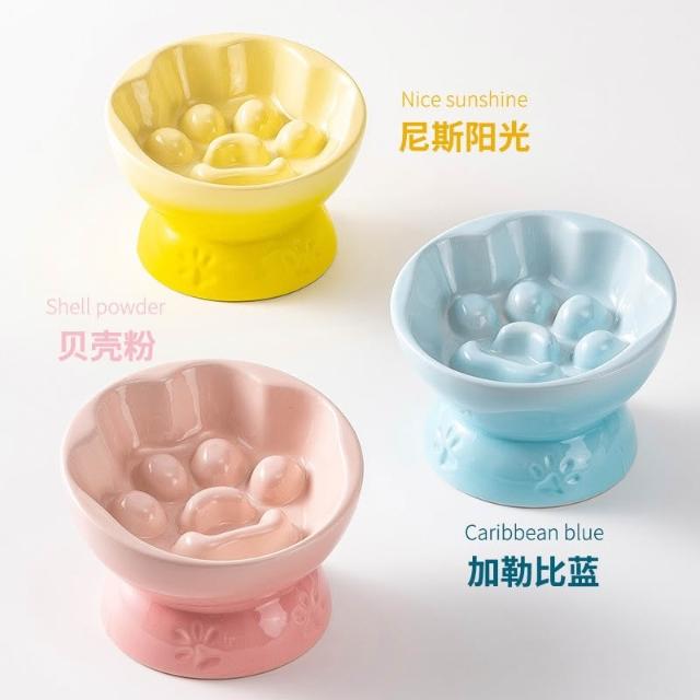 免運跨境陶瓷高腳慢食碗斜口寵物碗貓咪護頸釉下彩防噎防吐貓碗狗