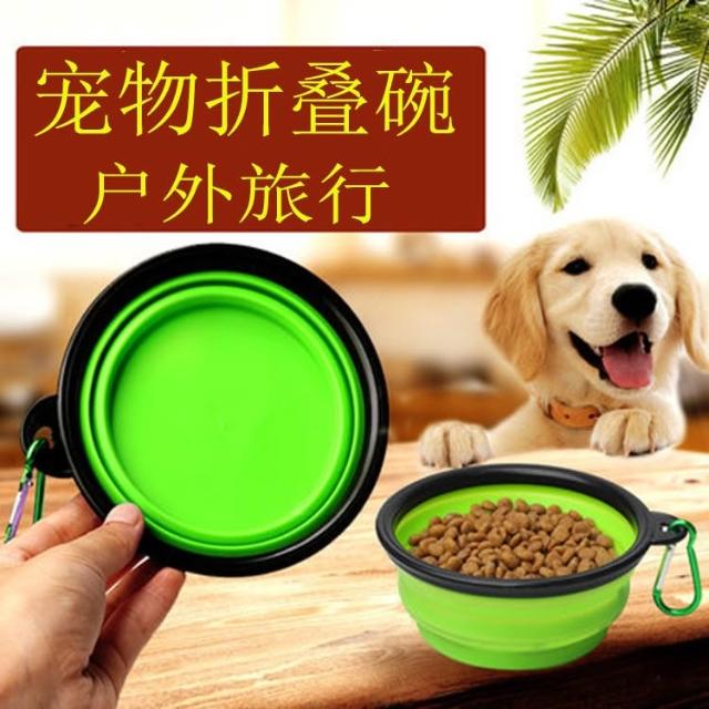 免運寵物折疊碗外出旅行便攜式寵物碗 戶外帶掛鉤狗狗硅膠兩用水糧