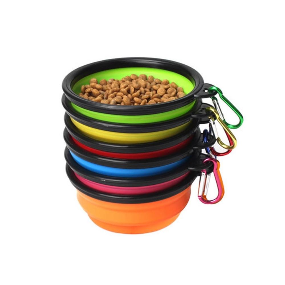 免運寵物折疊碗外出旅行便攜式寵物碗 戶外帶掛鉤狗狗硅膠兩用水糧