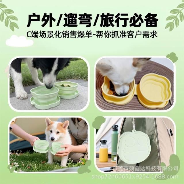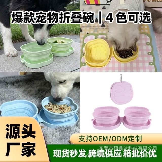 免運寵物硅膠雙折疊碗貓狗飯碗戶外便捷餐墊狗狗慢食碗批發定制便
