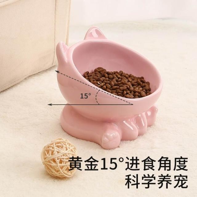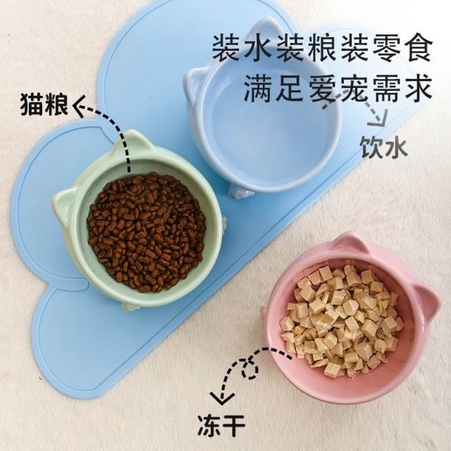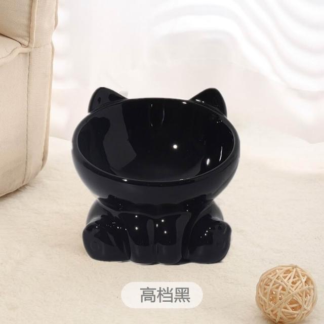 免運貓咪食盆黑色陶瓷貓碗斜口高腳可愛保護頸椎狗碗飲水貓盆防黑
