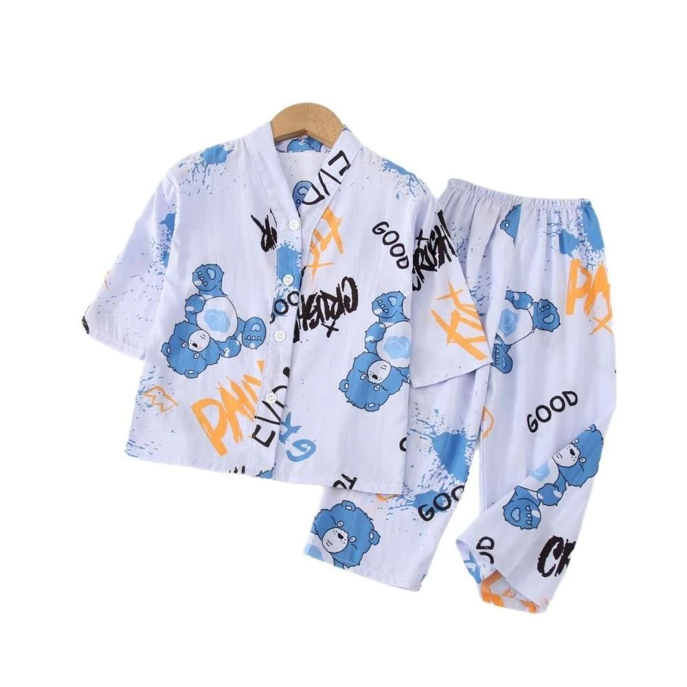 免運兒童睡衣棉綢套裝夏季男童女童空調服中大童家居服夏服裝親子