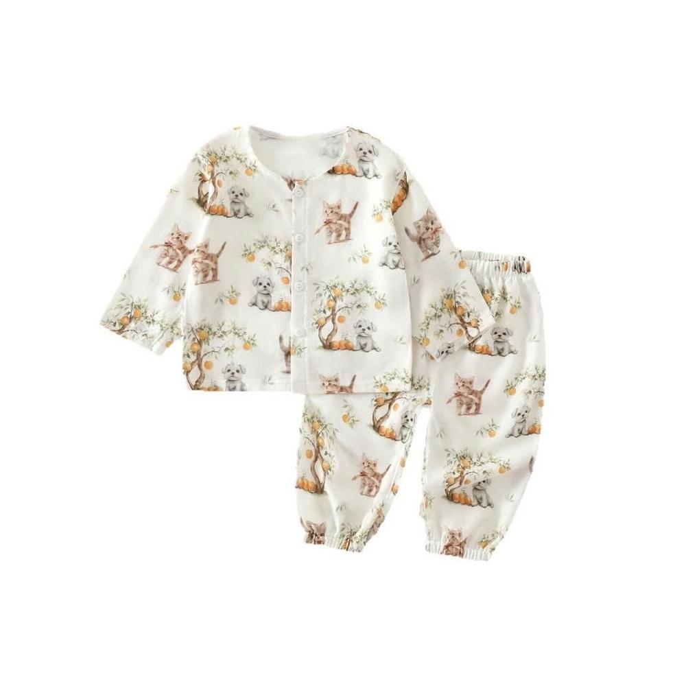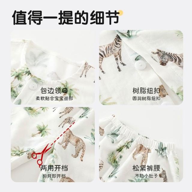 免運嬰兒衣服夏季薄款寶寶分體套裝A類竹纖維家居服睡衣倆件套萌趣