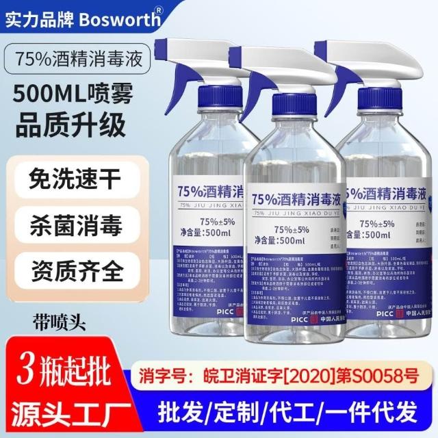 免運75度醫用酒精消毒液500ml噴霧家用免洗手液衣服殺菌清潔批發代