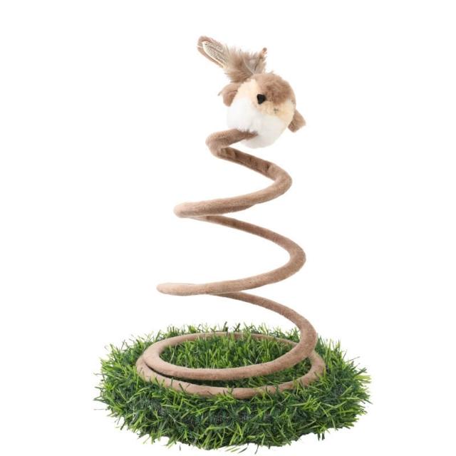 免運草坪鳥貓玩具毛絨麻雀彈簧鋼絲逗貓棒貓咪自嗨解悶彈簧圓盤貓