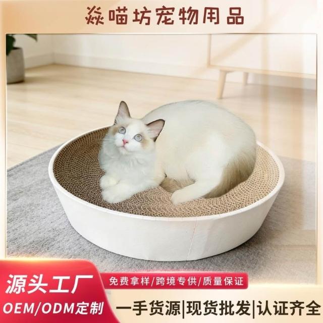 免運圓形貓窩簡約圓盤碗型貓抓板耐磨貓爪板瓦楞紙貓咪玩具寵物用