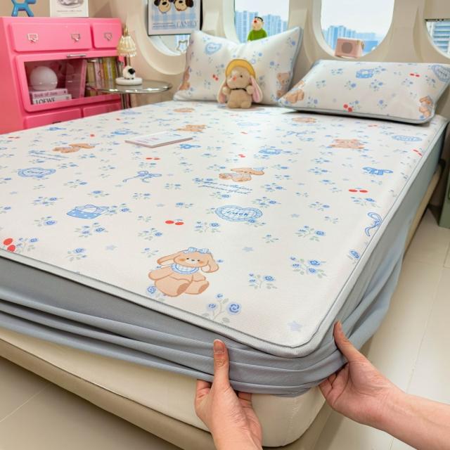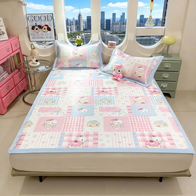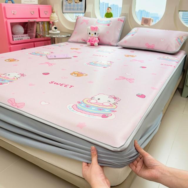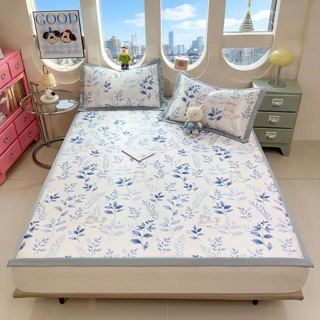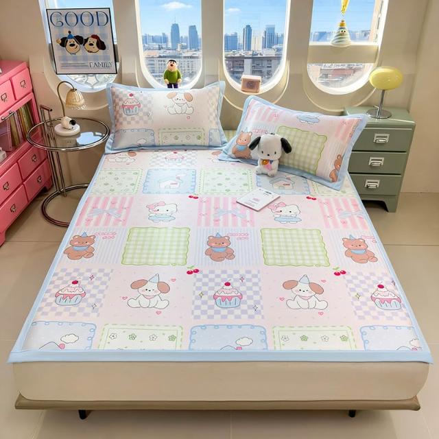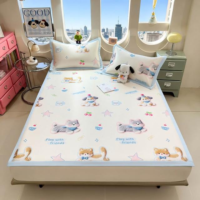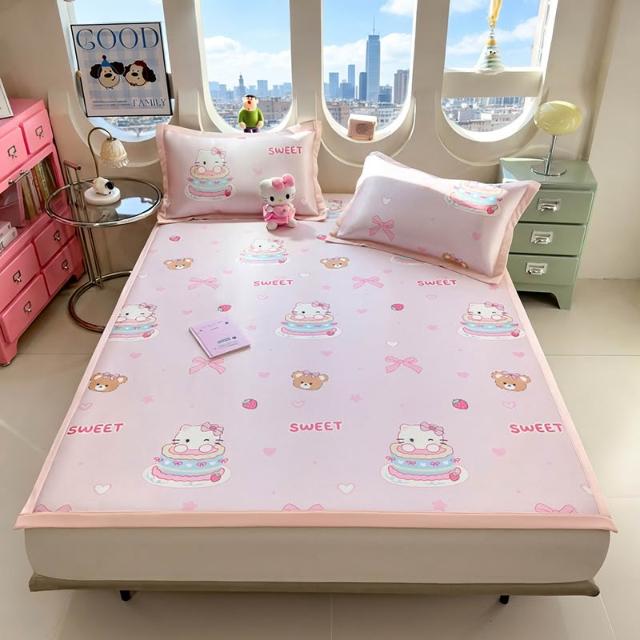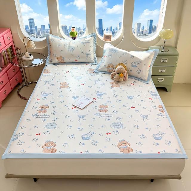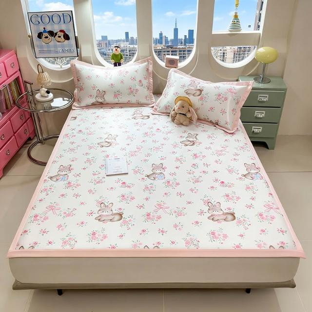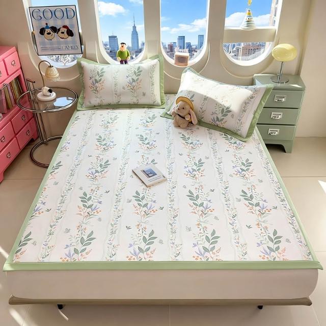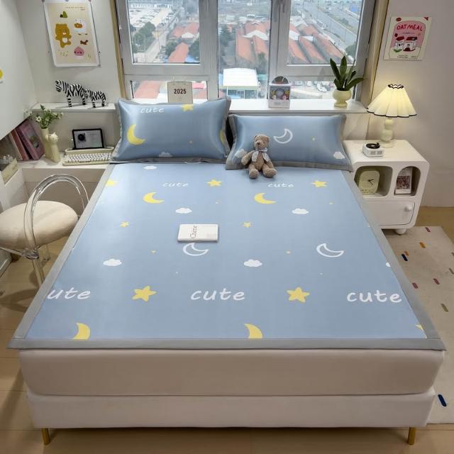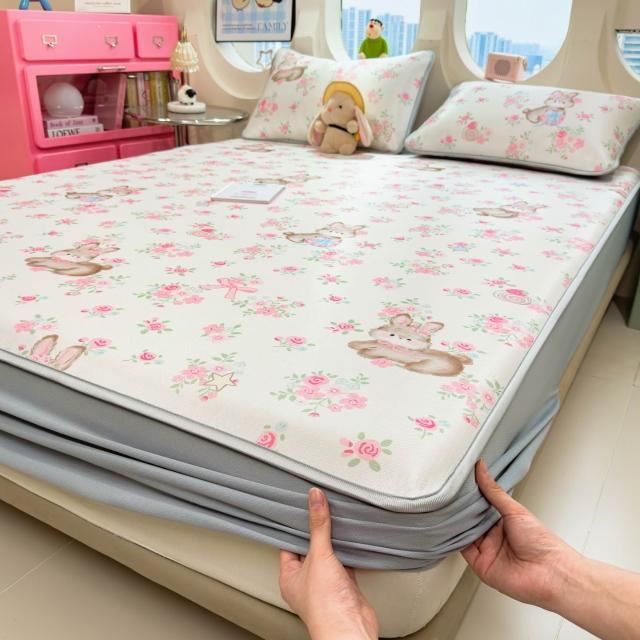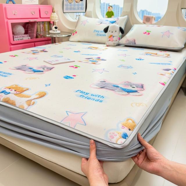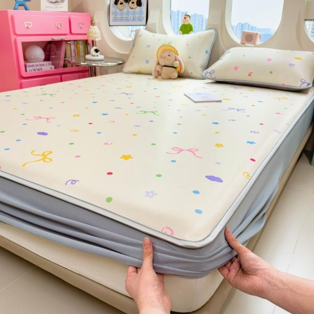 免運夏季冰絲涼席三件套床笠款可機洗嬰兒不起球軟席子墊子地墊批