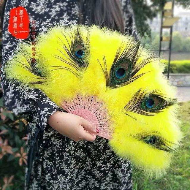 免運孔雀羽毛扇子直播表演旗袍走秀舞蹈扇子古風折扇網紅加厚毛毛