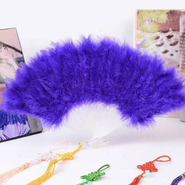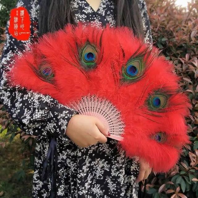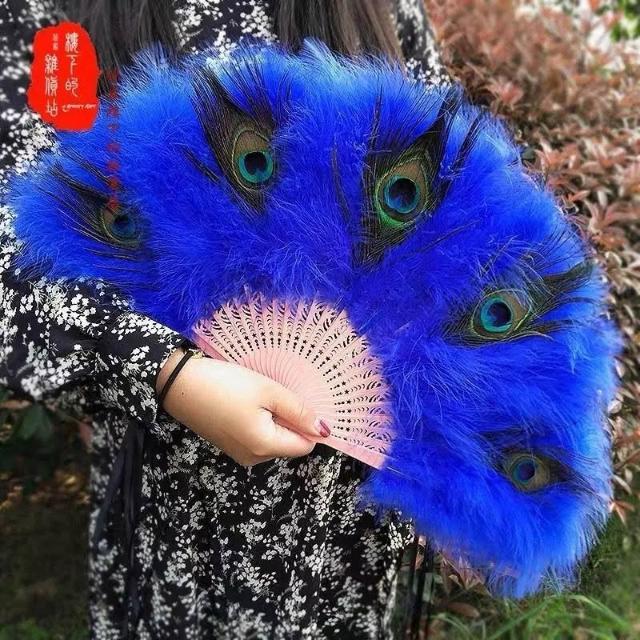 免運孔雀羽毛扇子直播表演旗袍走秀舞蹈扇子古風折扇網紅加厚毛毛