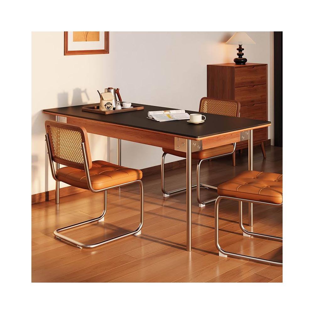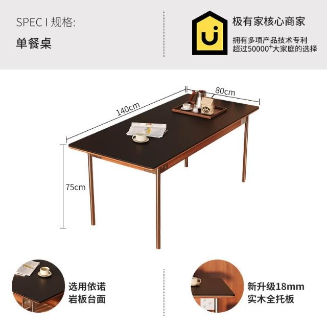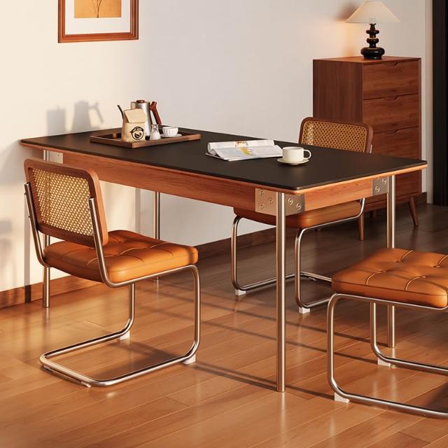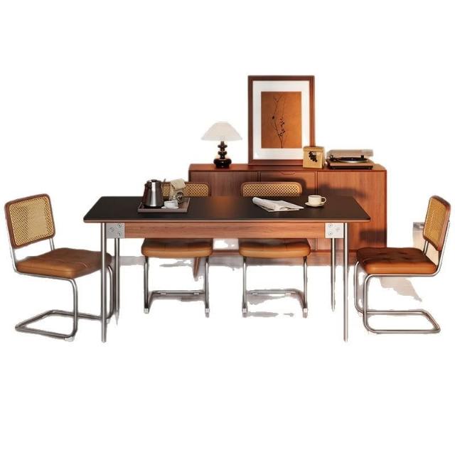 中古風岩板實木餐桌家庭高級感2024新款家用小戶型美式北歐長方形