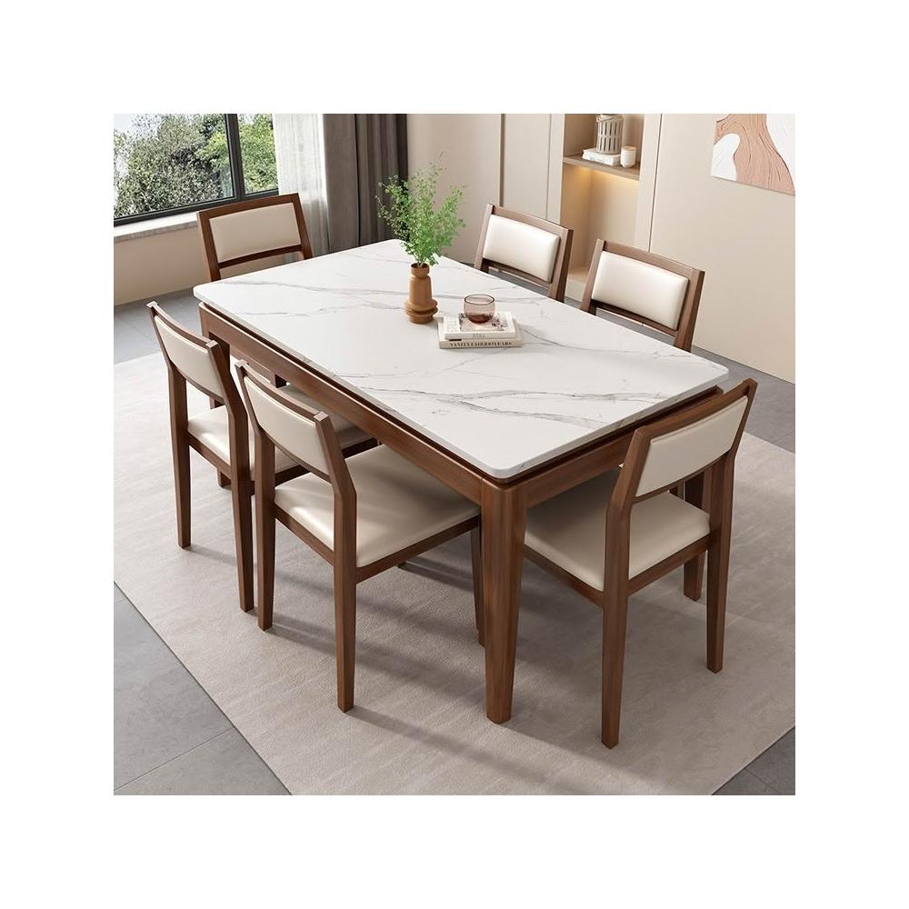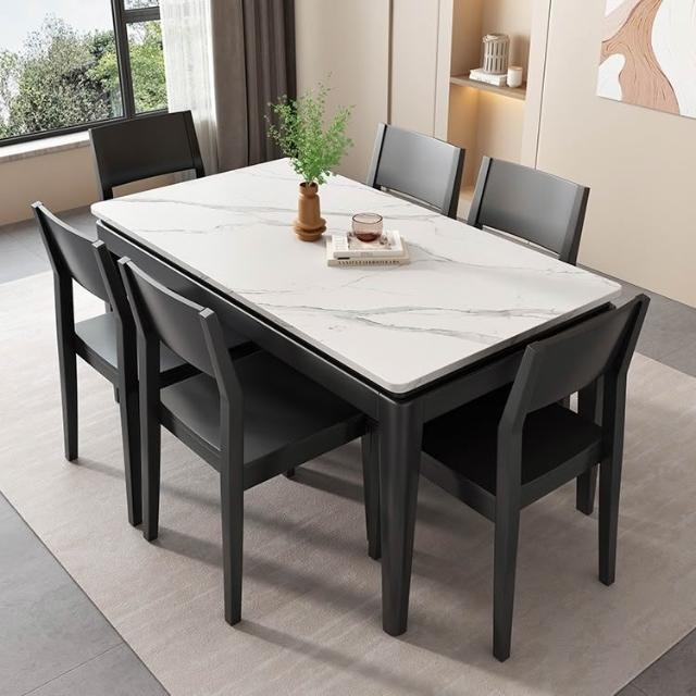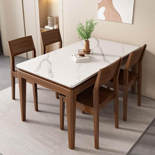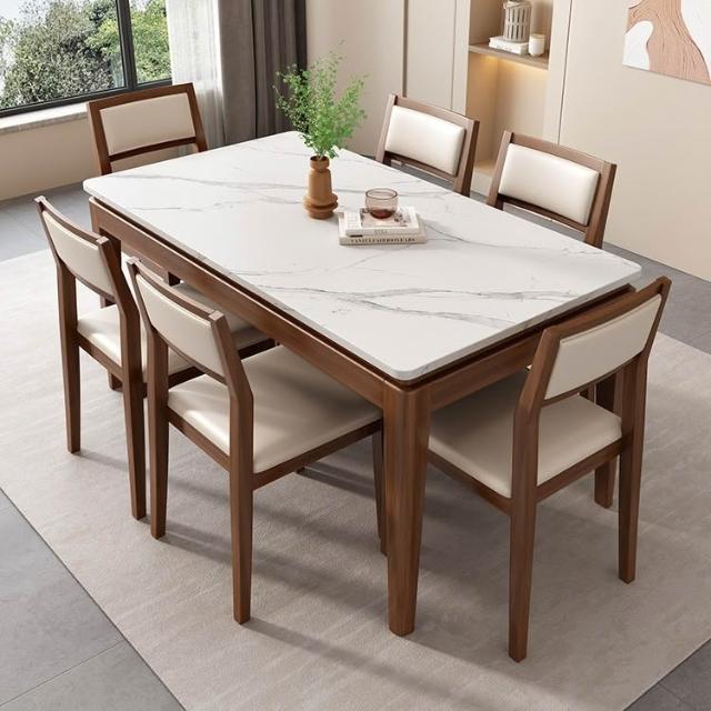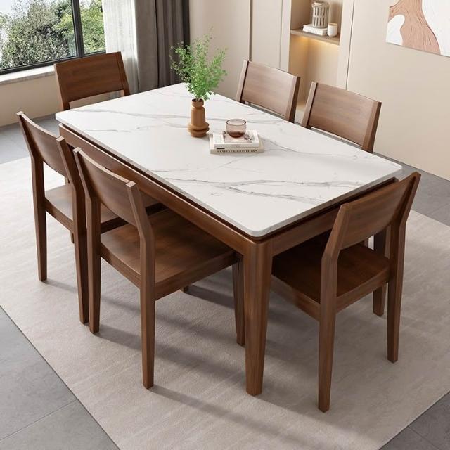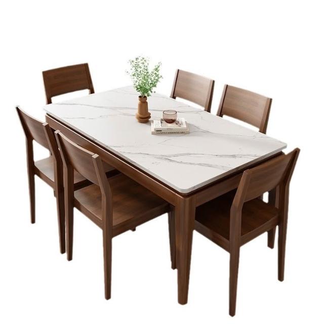 岩板餐桌椅組合家用小戶型長方形實木飯桌24款歺桌胡桃木色桌子