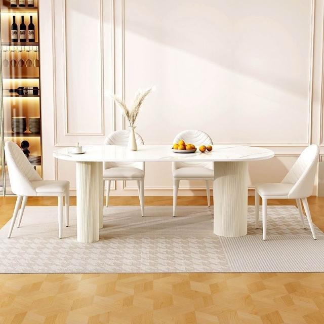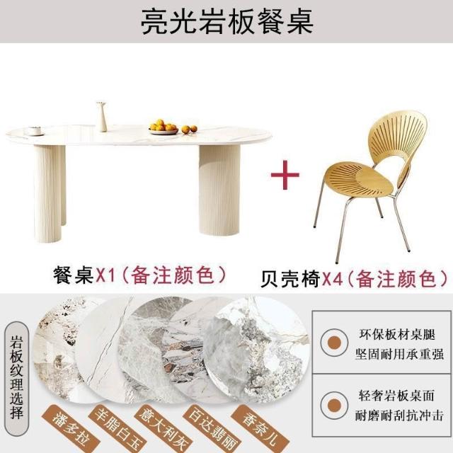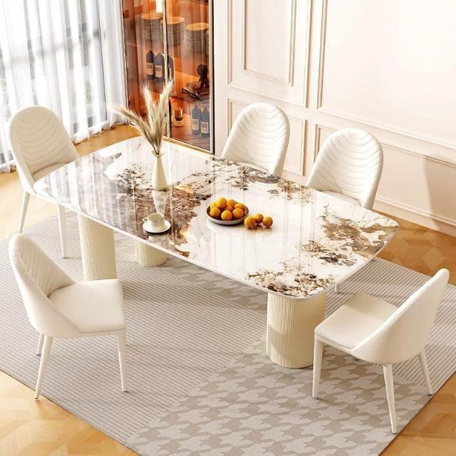 北歐岩板餐桌桌椅套裝北歐餐桌家用現代簡約白色餐桌法式餐桌椅