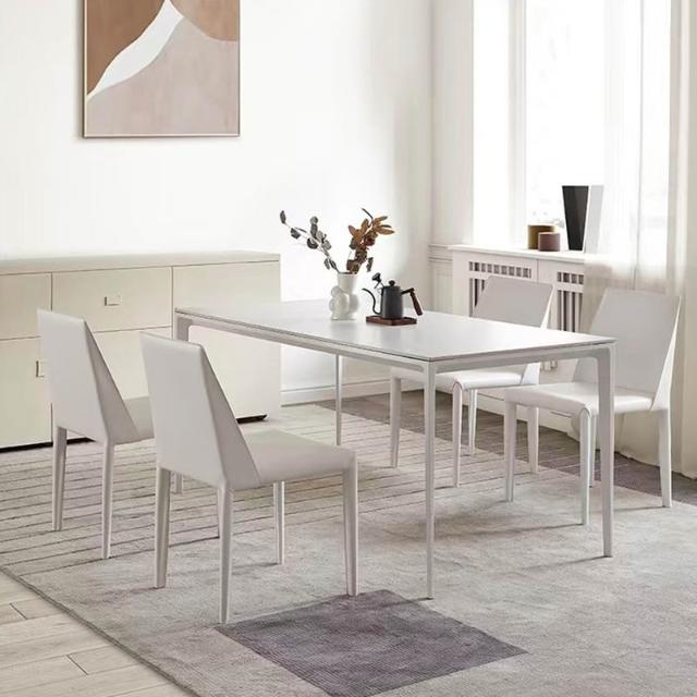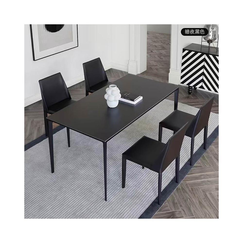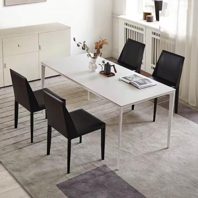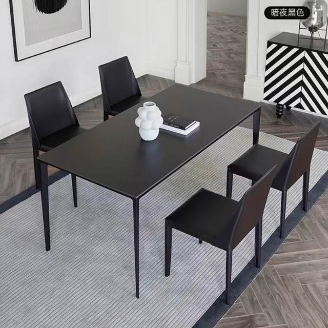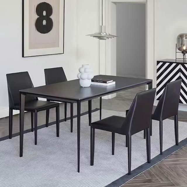 意式極簡輕奢純黑岩板餐桌椅組合餐椅鋁合金長方形家用小戶型飯桌