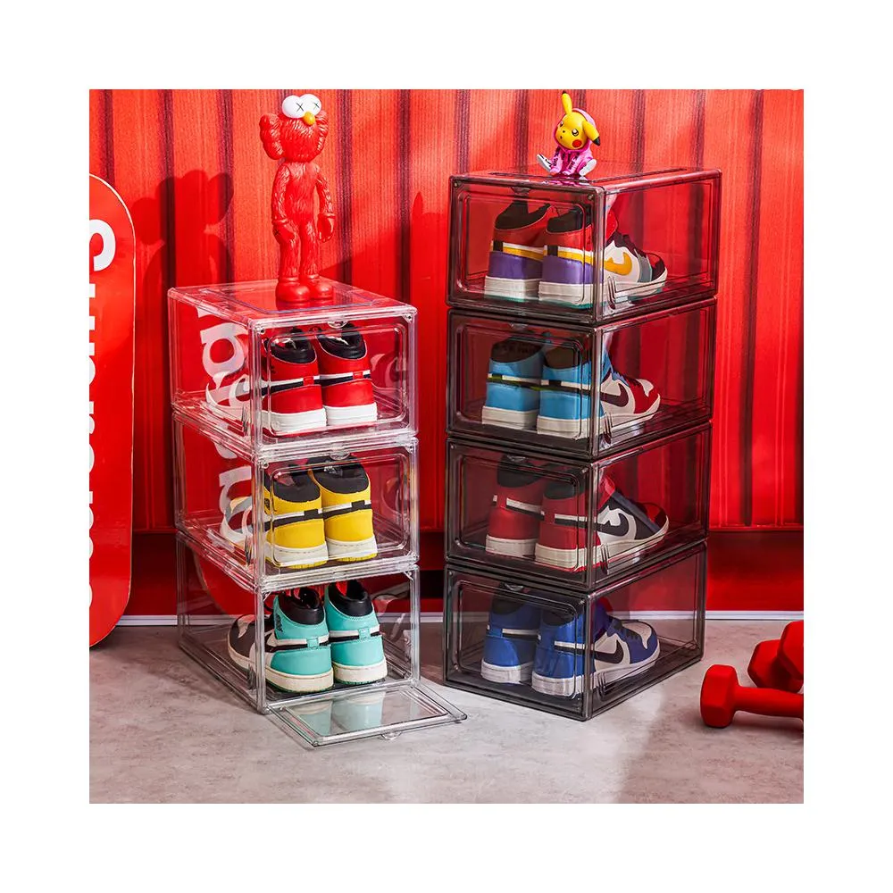 鞋盒折疊鞋盒磁吸式高幫透明籃球鞋盒亞克力球鞋收納盒展示鞋櫃