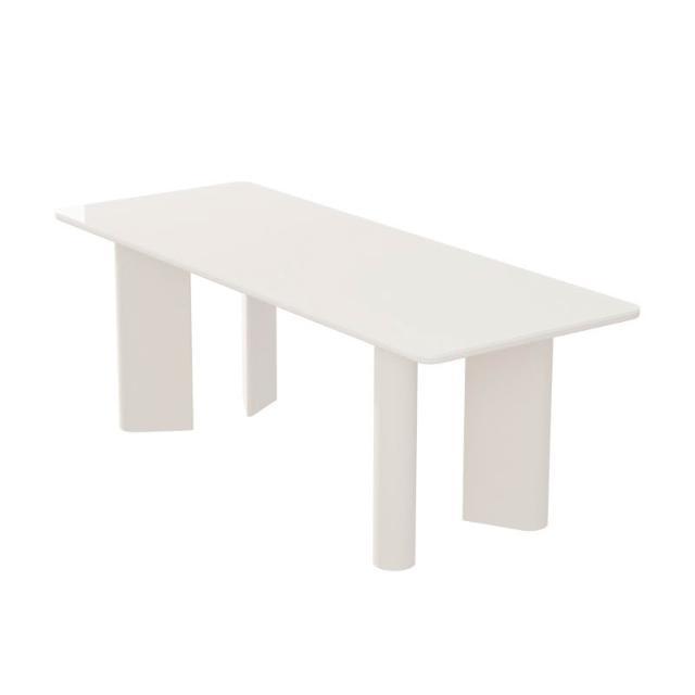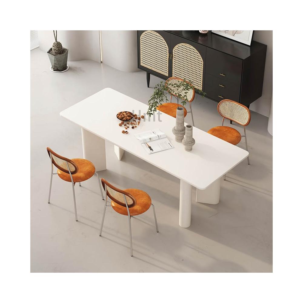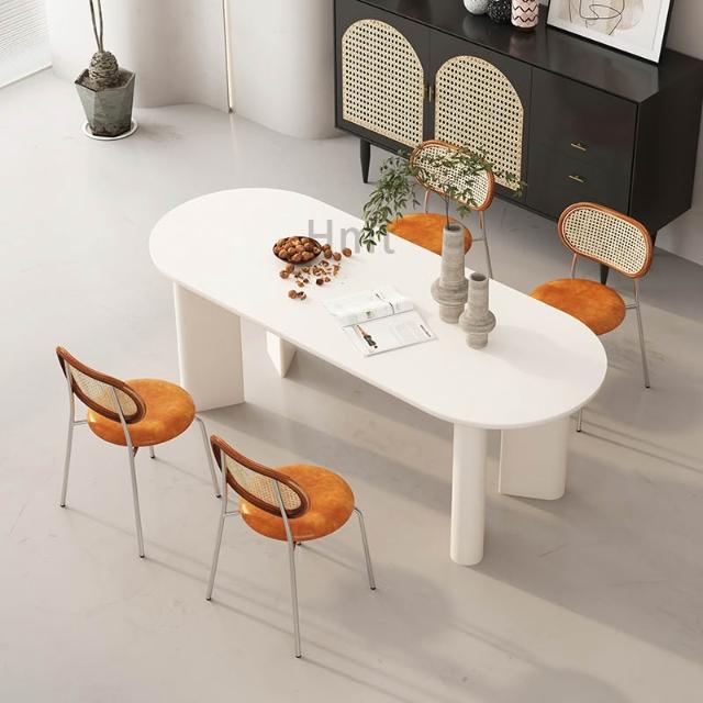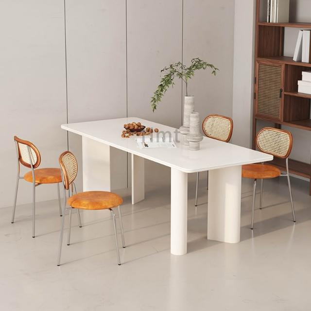 北歐家用岩板餐桌奶油風實木桌簡易高端長方形飯桌網紅輕奢洽談桌