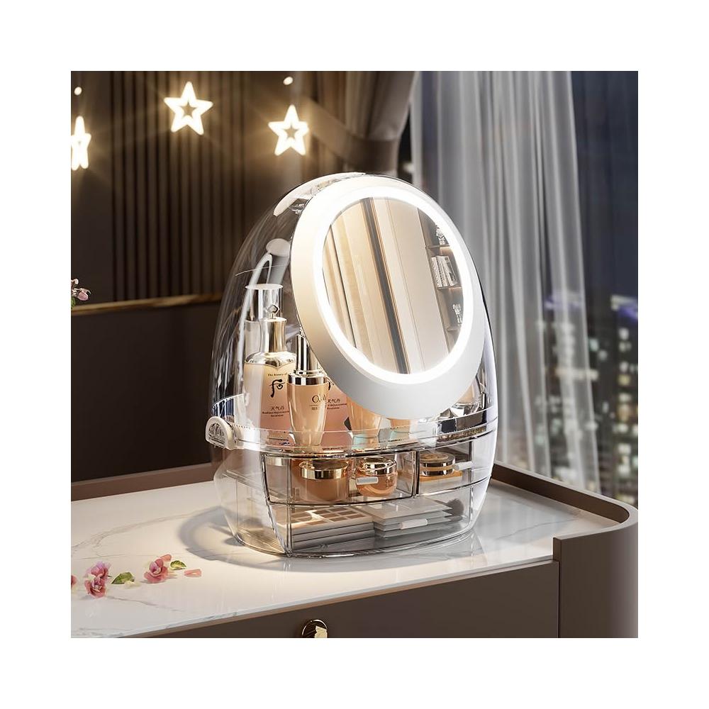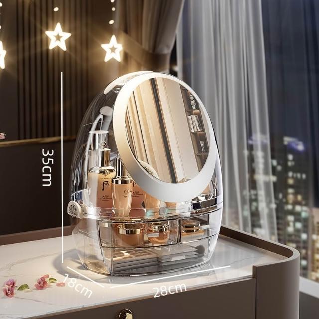 化妆品收纳盒桌面带镜子一体防尘大容量梳妆台护肤品面膜置物架箱