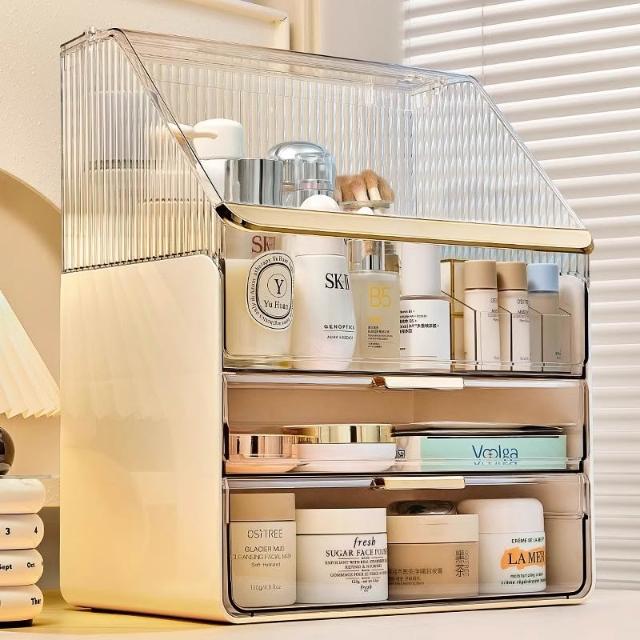 免運 爆款 化妆品收纳盒梳妆台护肤品置物架亚克力整理盒桌面防尘化妆箱收納盒整潔收納
