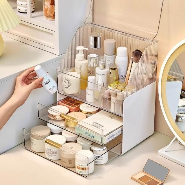 免運 爆款 化妆品收纳盒梳妆台护肤品置物架亚克力整理盒桌面防尘化妆箱收納盒整潔收納