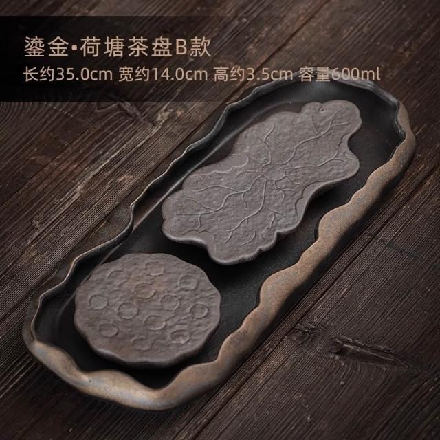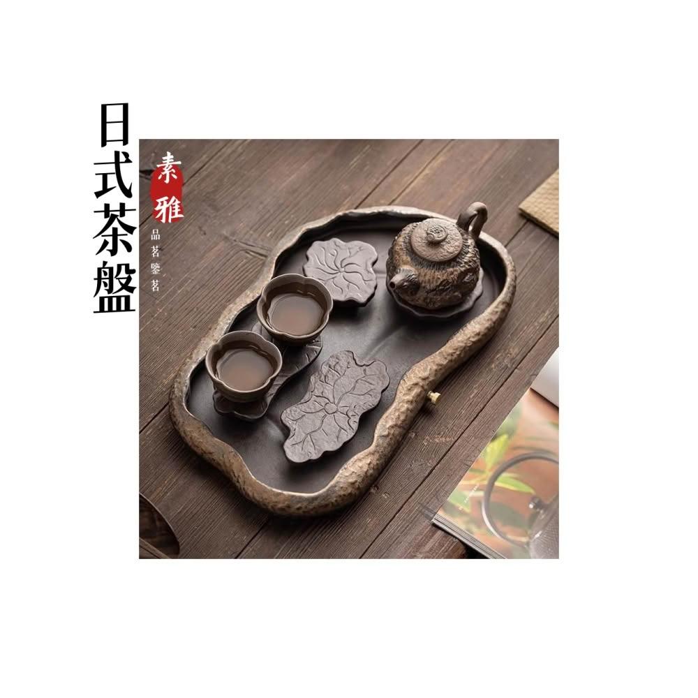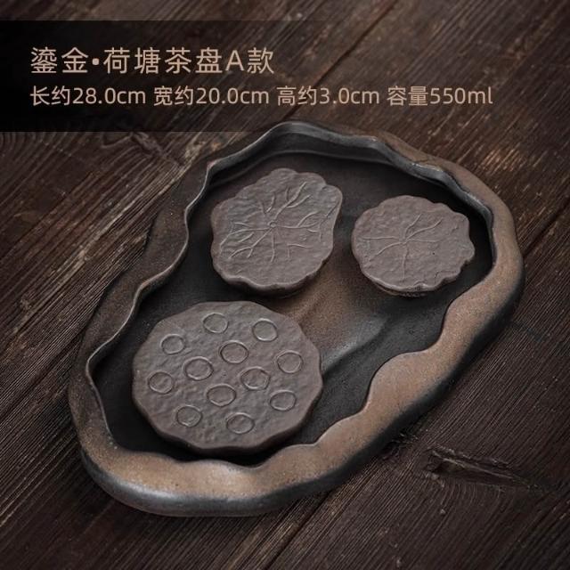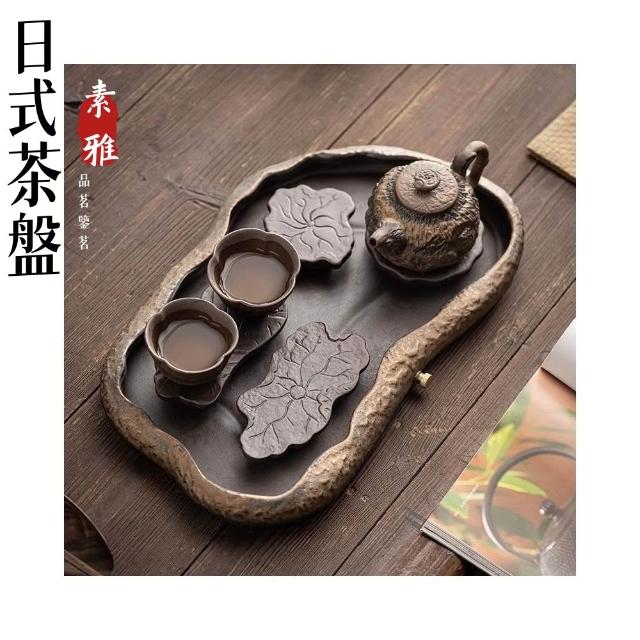 含稅免運 日式茶盤 陶瓷儲水小型幹泡盤 幹泡臺功夫茶具 壺承託盤粗陶禪意茶臺