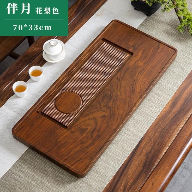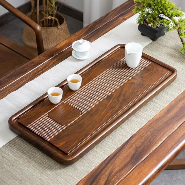 整塊實木茶盤排水辦公室茶海家用功夫茶臺單層中式花梨黑檀電木款