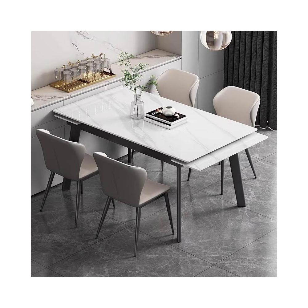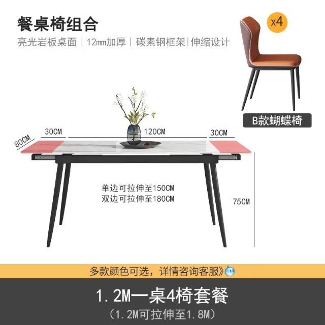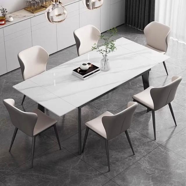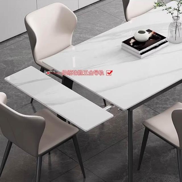 北歐輕奢可伸縮折疊岩板餐桌椅組合現代簡約家用小戶型長方形餐桌