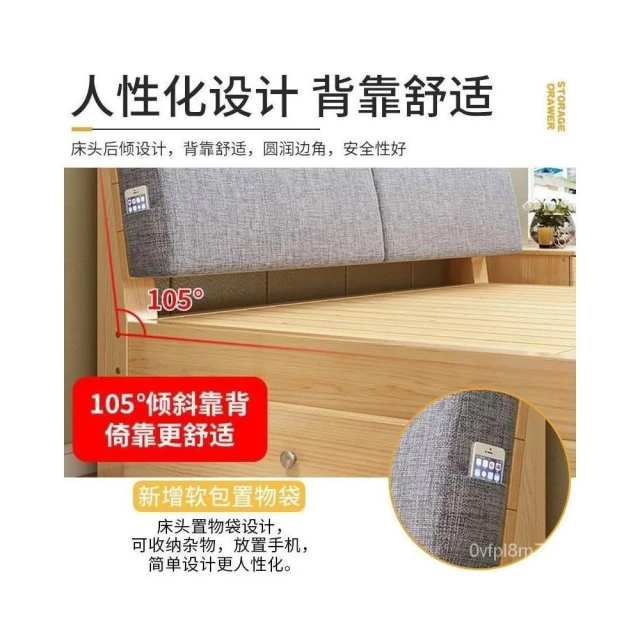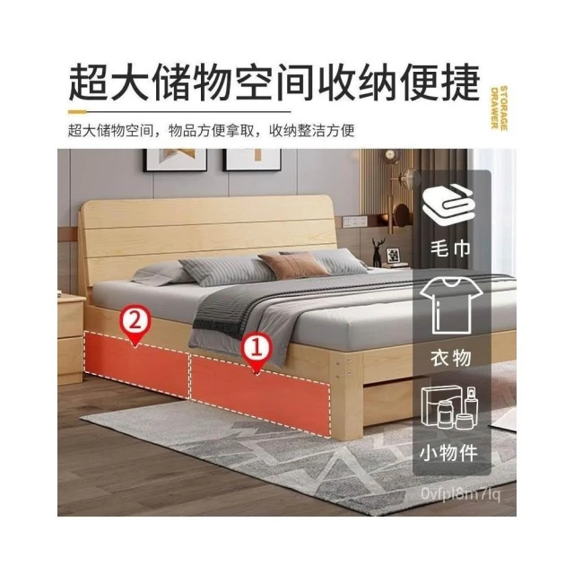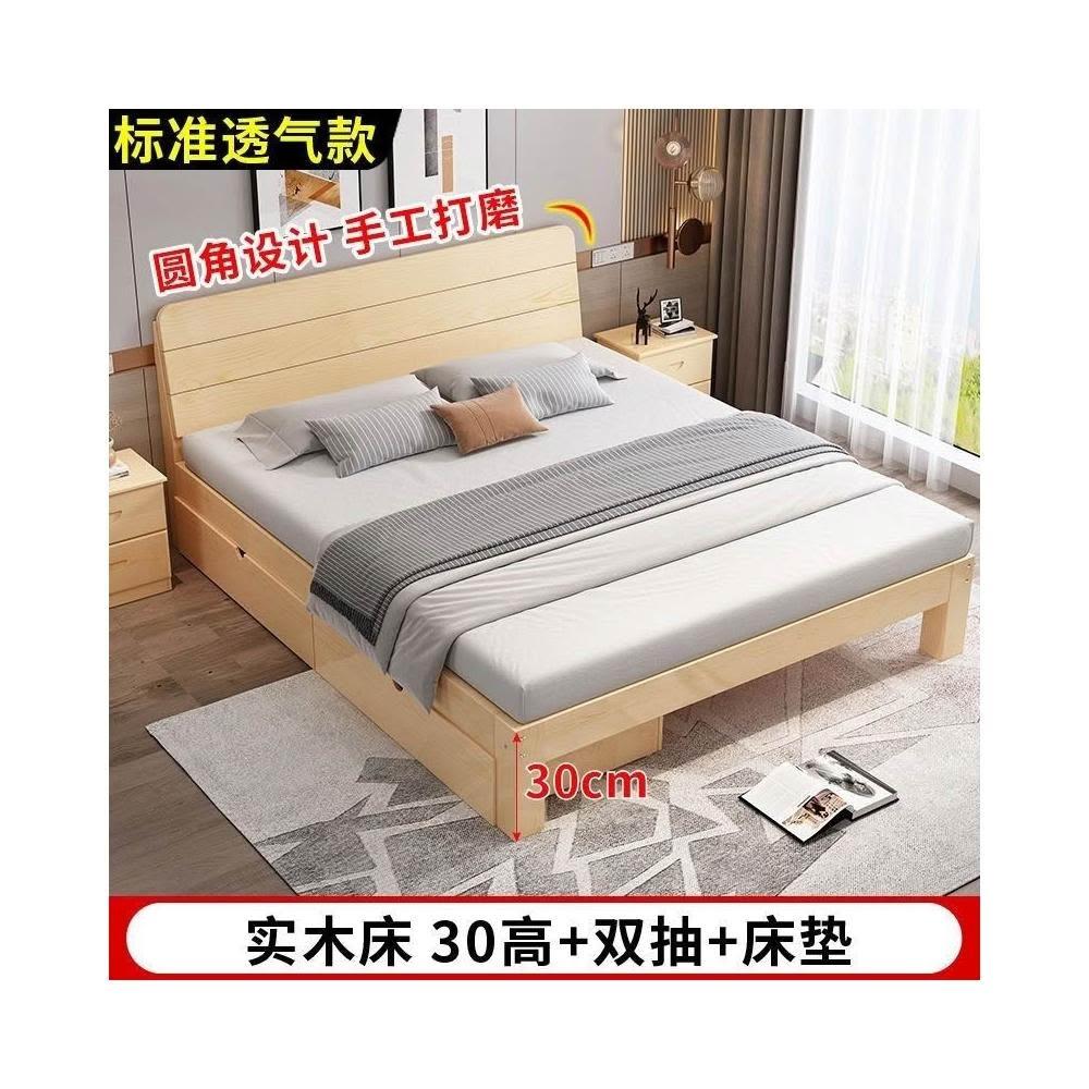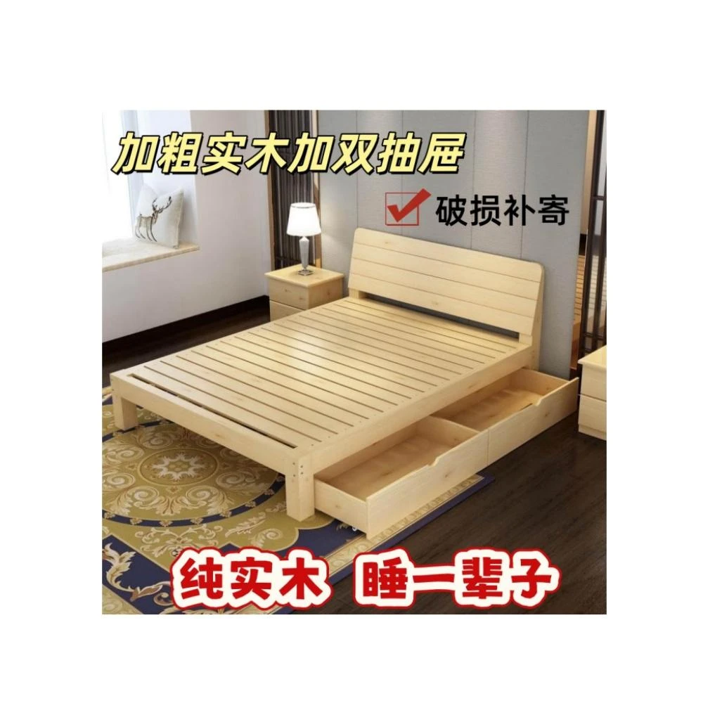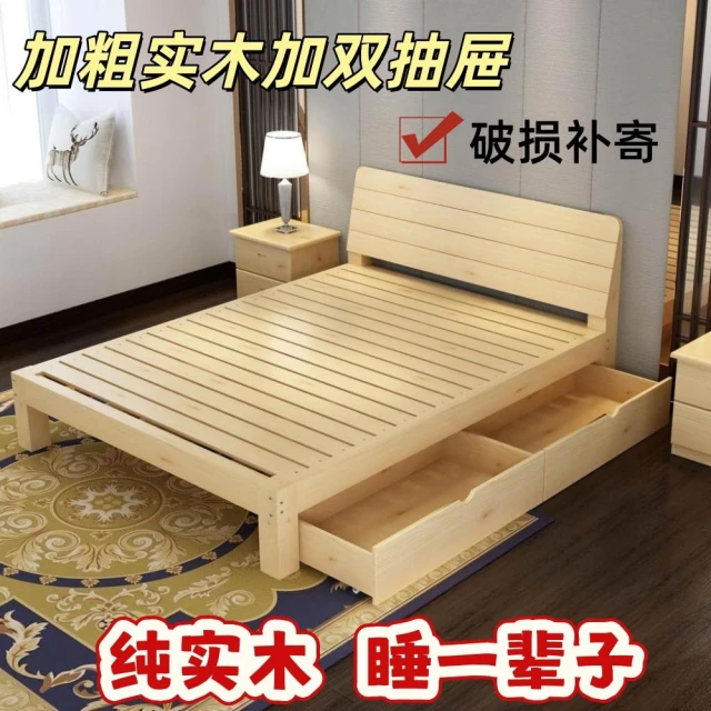免運到府 1.2m\1.5m實木床 鬆木 雙人床 經濟型 現代 簡約 出租房 簡易 單人床 床架 單人加大床架 6尺床架