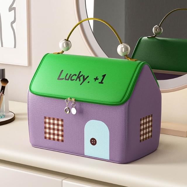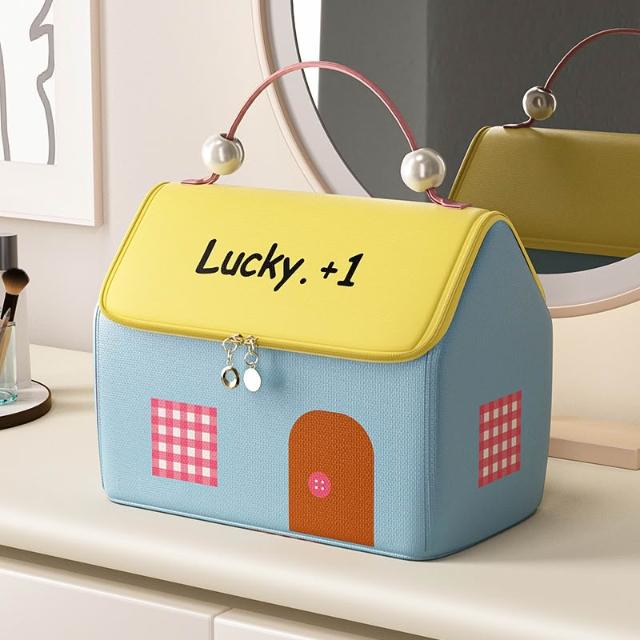多巴胺房子化妝包分區防水洗漱包化妝品旅行收納袋手提高級感便攜