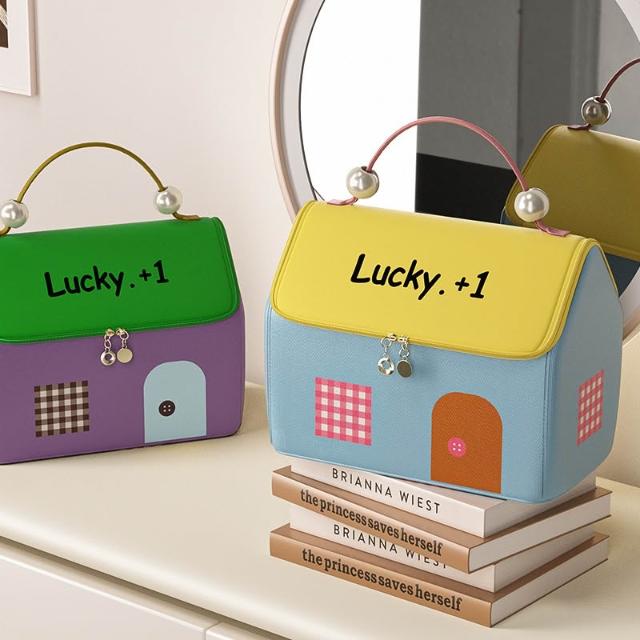 多巴胺房子化妝包分區防水洗漱包化妝品旅行收納袋手提高級感便攜