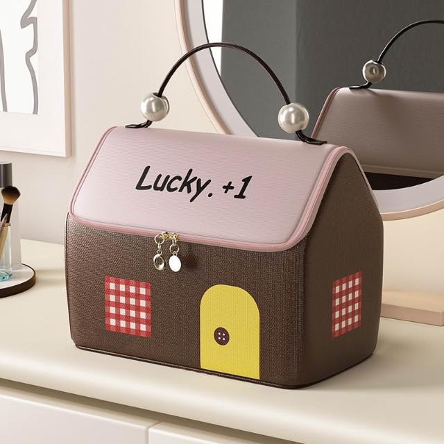 多巴胺房子化妝包分區防水洗漱包化妝品旅行收納袋手提高級感便攜