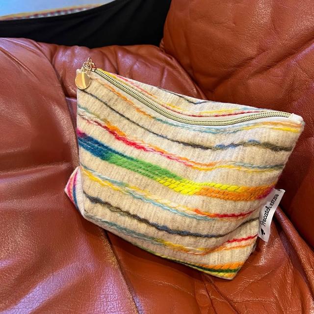 美摘Precatch彩虹條紋布藝化妝包旅行便攜大容量收納袋大號手馬小