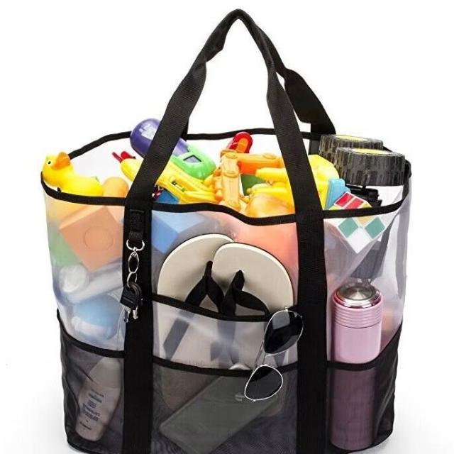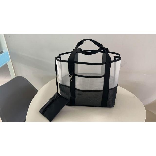 新款手提網眼沙灘包化妝旅行收納洗漱包網紗便攜游泳沐浴包沙灘袋