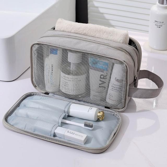 健身洗漱包乾濕分離雙層便攜旅遊透明防水游泳洗澡化妝包收納袋女