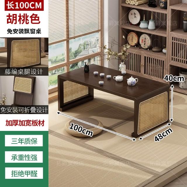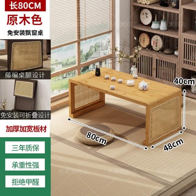 飘窗小桌子中式可折叠炕桌榻榻米茶桌家用非实木坐地式禅意小矮桌