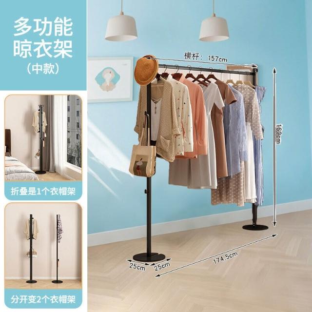 客廳家用立式置物衣帽架折疊晾衣架落地家用臥室掛衣架陽臺衣服架