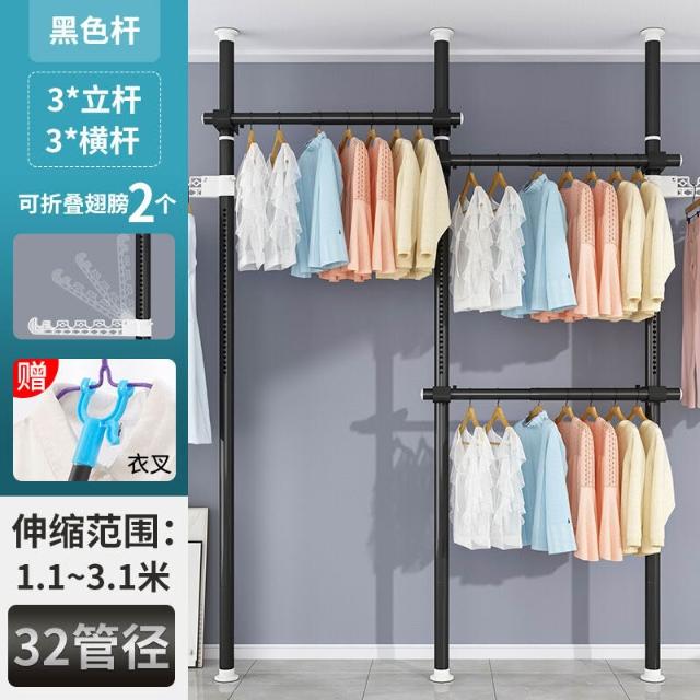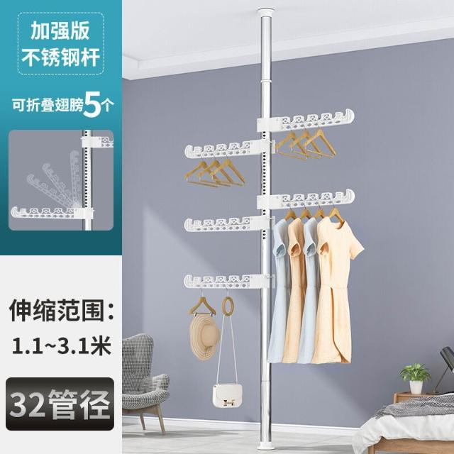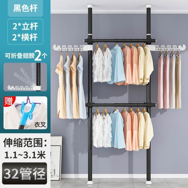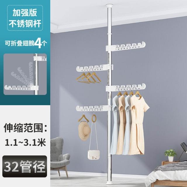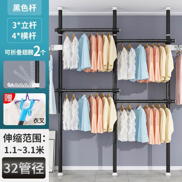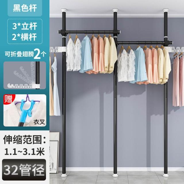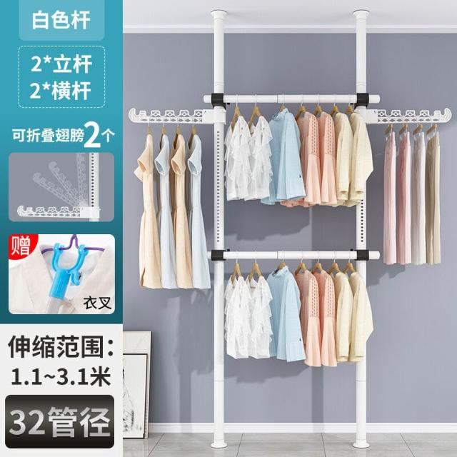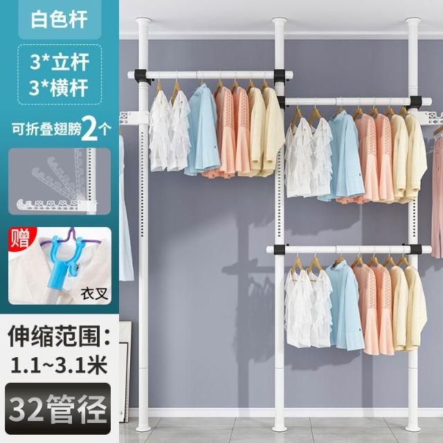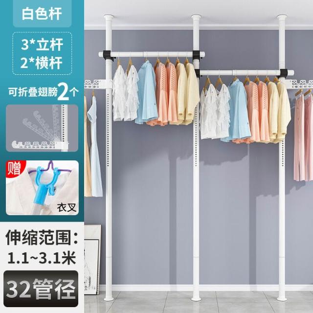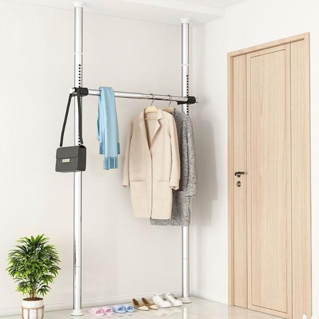 頂天立地衣架置物架置衣架掛衣免打孔伸縮桿陽臺落地臥室內晾E18
