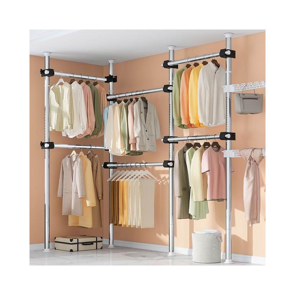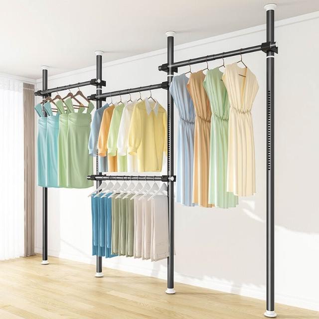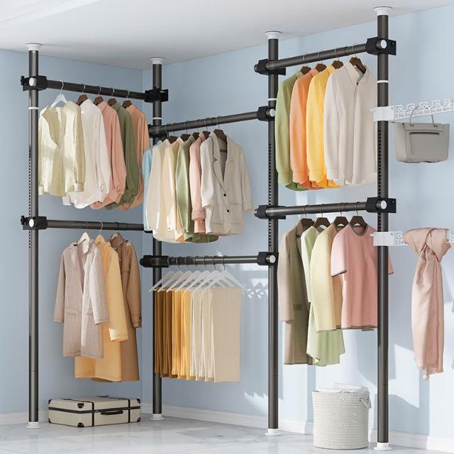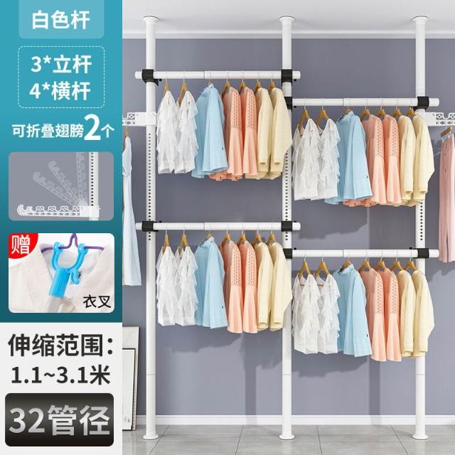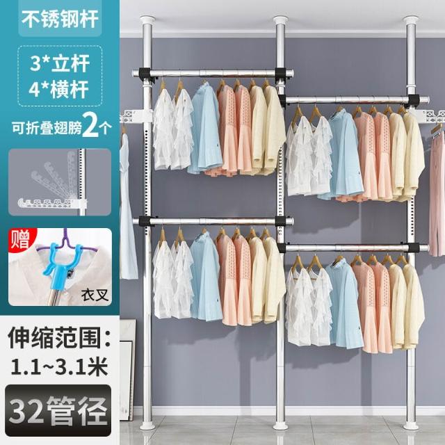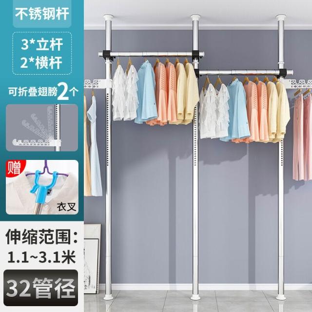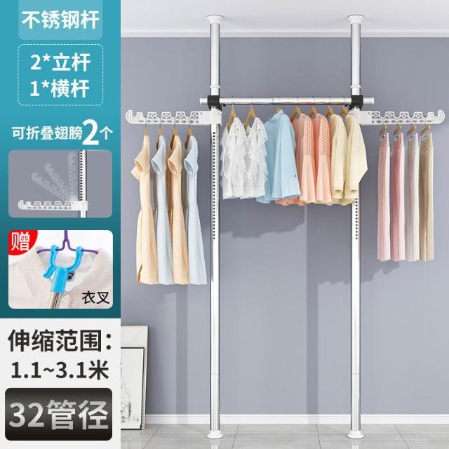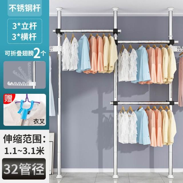 頂天立地衣架置物架置衣架掛衣免打孔伸縮桿陽臺落地臥室內晾E18