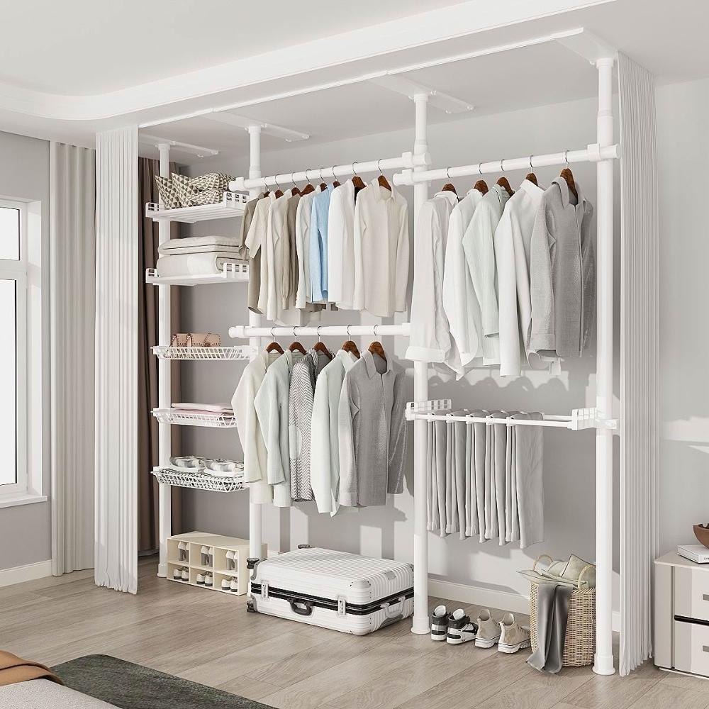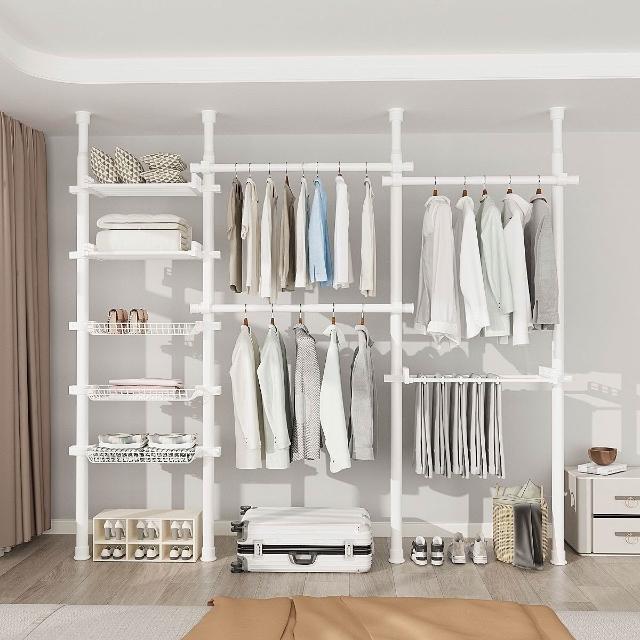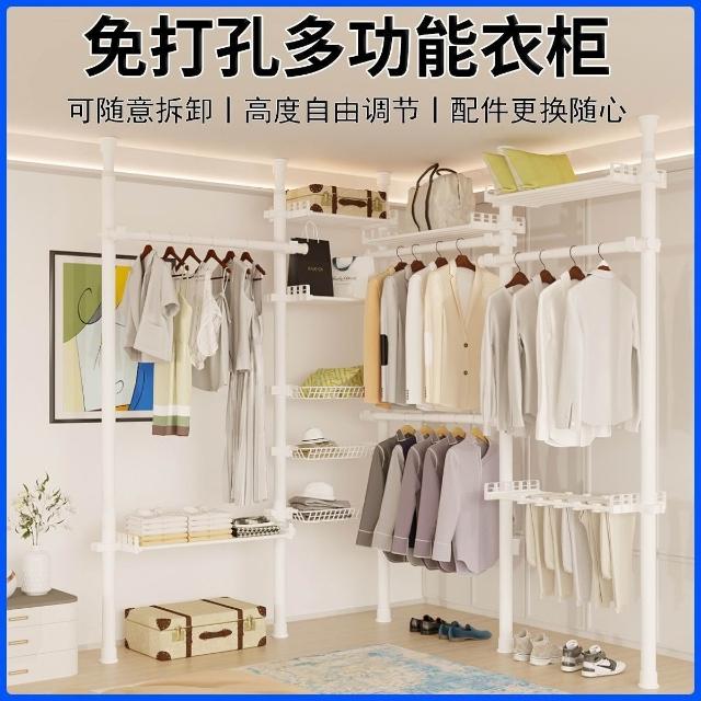 頂天立地置物架置衣架免打孔掛衣架晾衣架組裝金屬架子衣櫃衣帽間