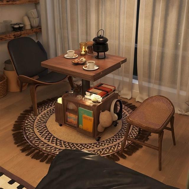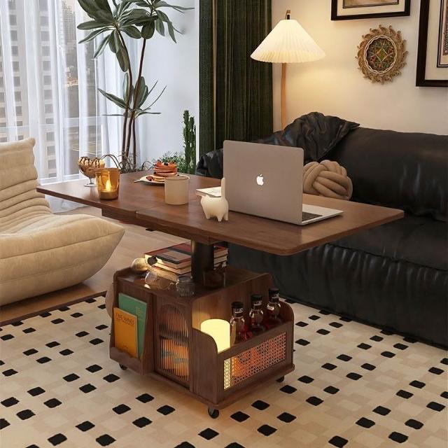實木時代升降茶幾移動推車茶桌折疊餐桌兩用茶臺多功能客廳沙發